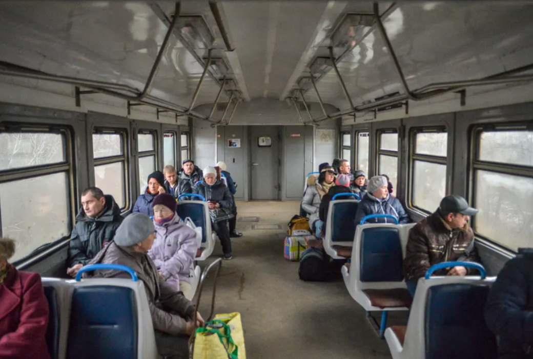 Пасажири вирушають за третю колію для відправлення потягів електрички, яка розташована на станції Видубичі.