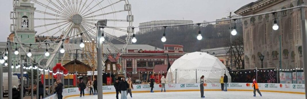 У Києві на Контрактовій площі облаштували святкову локацію, яка офіційно відкриється 19 грудня 2025 року. Це перше з початку повномасштабної війни різдвяне містечко у центральній частині столиці з ковзанкою та ярмарковими будиночками.