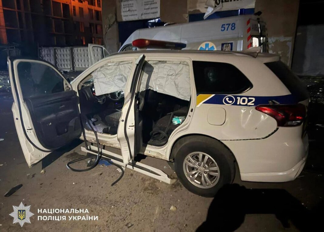 "Від удару балістикою один із правоохоронців зазнав осколкового поранення ноги. Побратими наклали постраждалому турнікет та, оскільки службовий автомобіль був пошкоджений, поліцейські звернулися по допомогу до перехожого громадянина, який на власному авто відвіз пораненого правоохоронця до лікарні", – розповіли у поліції.