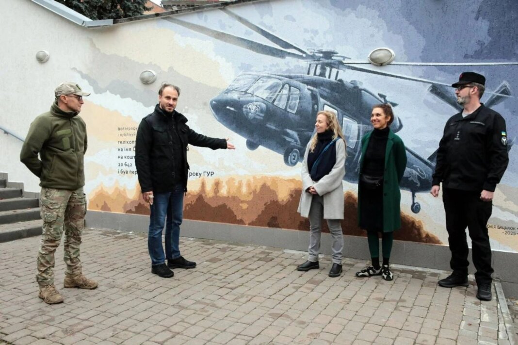 На стіні Посольства Чехії в Україні з'явився мурал "Металевий Птах" на знак вдячності чехам, які зібрали кошти на гелікоптер Black Hawk UH-60 "Costmir" для ГУР МО України. Гелікоптер передали українським розвідникам влітку 2025 року завдяки пожертвам 20 642 чеських громадян.