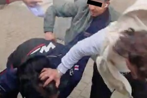На записі видно, як один із контролерів намагається втримати чоловіка, а його спільник розпорошує йому в обличчя перцевий балончик і завдає удару кулаком. Контролер падає на землю, але продовжує тримати нападника за ногу, після чого отримує кілька ударів в обличчя. Коли другий співробітник служби безпеки намагається втрутитися, його також атакують перцевим балончиком.