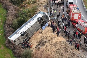 Сьогодні вранці на півдні Туреччини, неподалік Анталії, сталася велика аварія за участю пасажирського автобуса. За даними місцевої влади, загинули щонайменше вісім людей, ще 26 отримали травми, кілька постраждалих перебувають у тяжкому стані.
