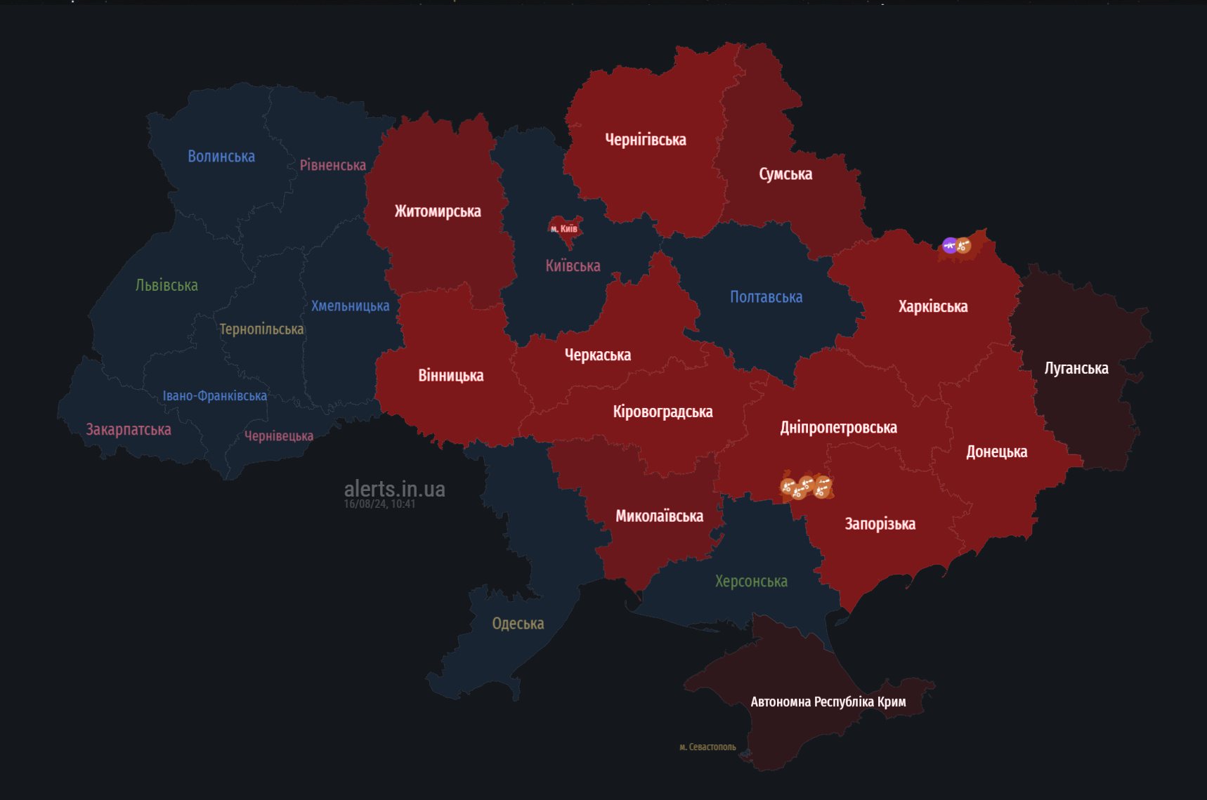 Станом на 10:39 у Києві та низці областей України оголошена повітряна тривога. Як повідомляють моніторингові пабліки, тривога пов'язана з ракетною небезпекою.