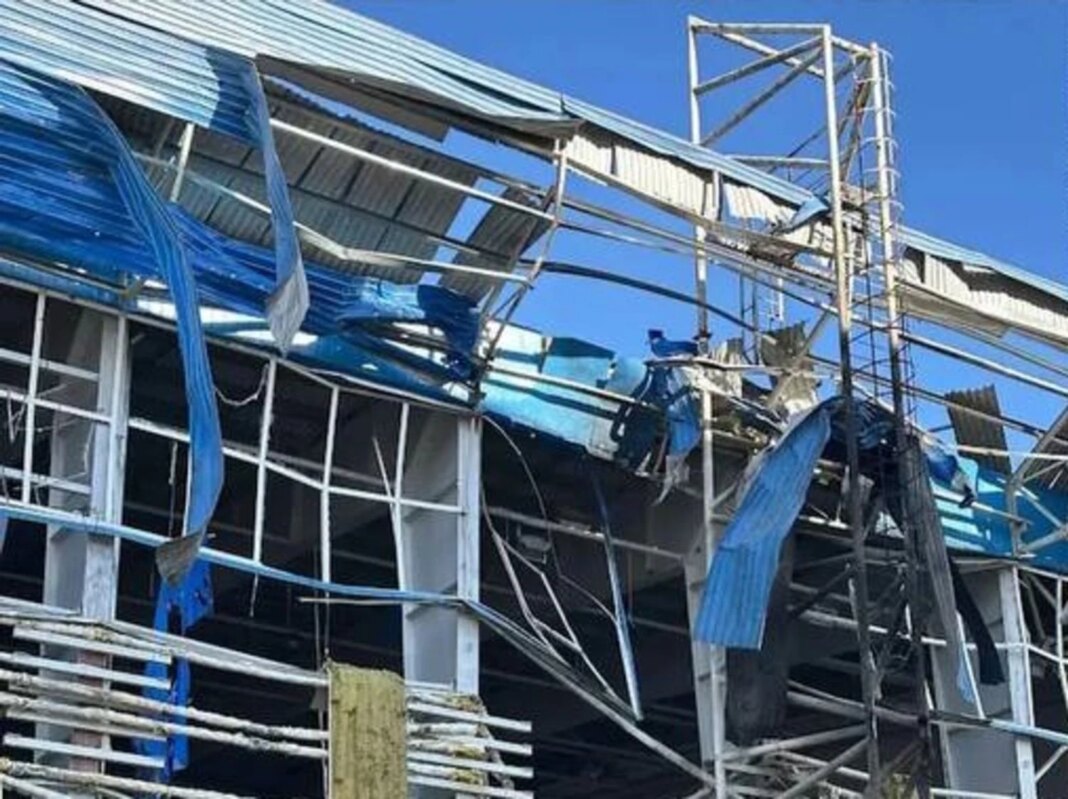 У даній будівлі вибиті вікна та частково зруйновано конструкції. До початку повномасштабного російського вторгнення арена регулярно приймала змагання чемпіонатів України у приміщенні.