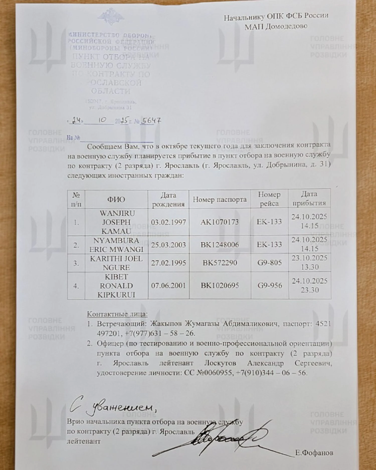 Одним з ліквідованих Силами оборони України є громадянин Кенії Ньямбура Ерік Мвангі, 2003 року народження. За даними розвідки, він прибув до російського ярославля 23–24 жовтня 2025 року, разом з трьома своїми співвітчизниками Ванджіром Джозефом Камау, Карітхі Джоелом Нгуре та Кібетом Рональдом Кіпкуруї.