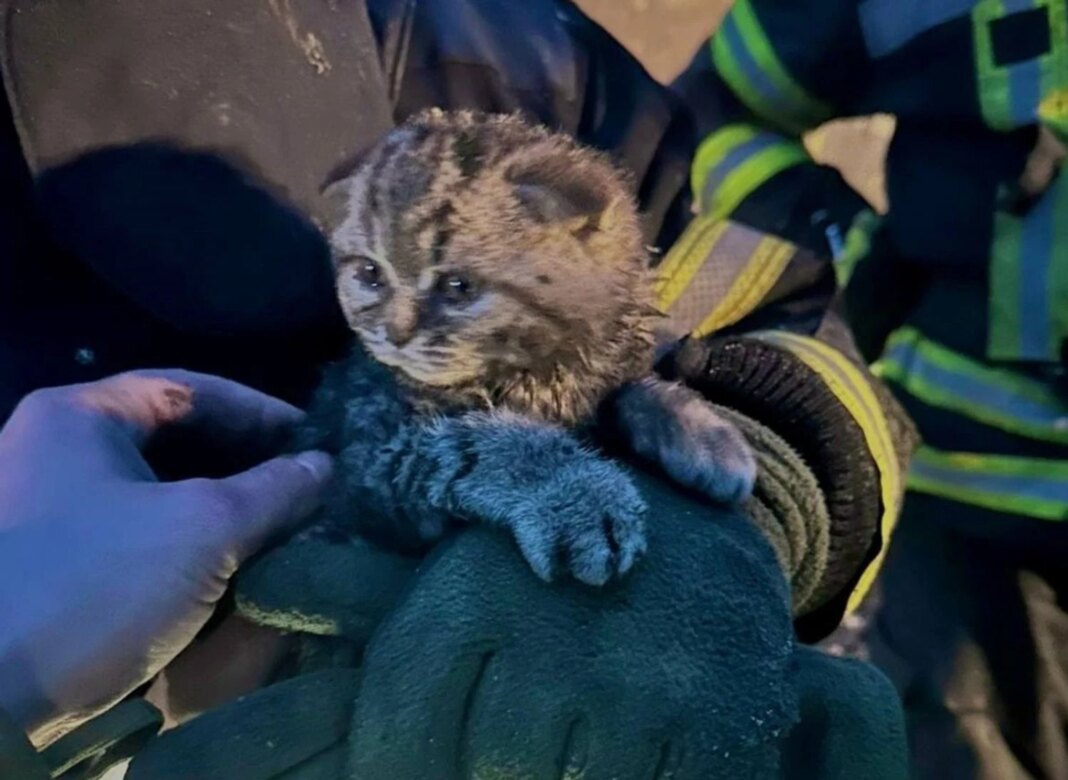 В селищі Хотів Обухівського району рятувальники дістали з-під завалів кошеня, яке десять годин перебувало під плитою перекриття після російського обстрілу. Тварина була налякана, але неушкоджена, після того як її визволили за допомогою спеціального інструменту.