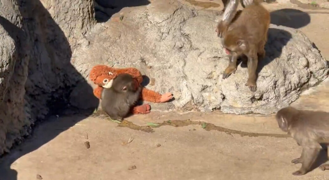 СвітФан На самотнього мавпенятка Панча напала розлючена доросла макака: він знайшов розраду в іграшці (відео)