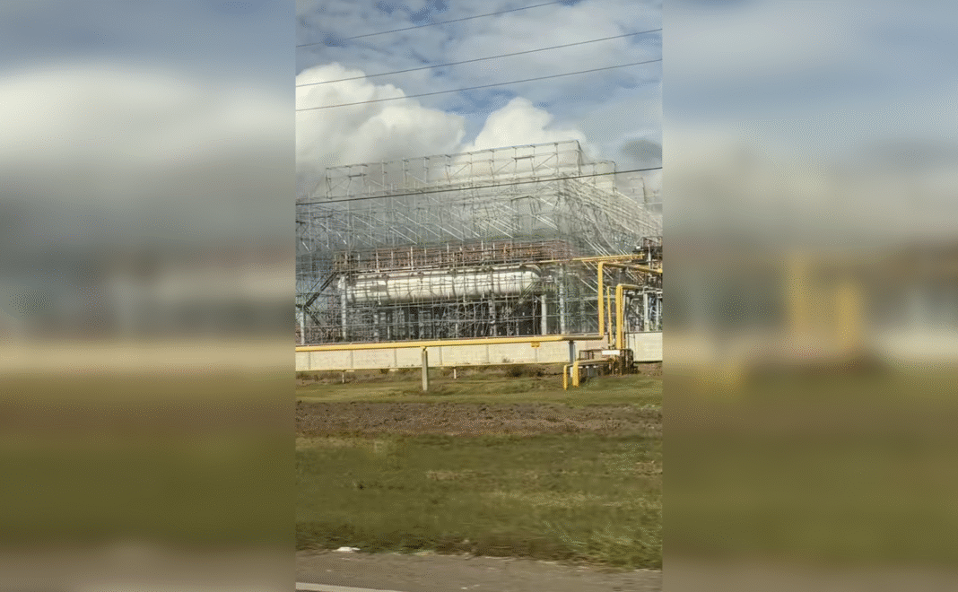 На кадрах можна побачити багаторівневі металеві конструкції над будівлями підприємства з написом "Транснефть".