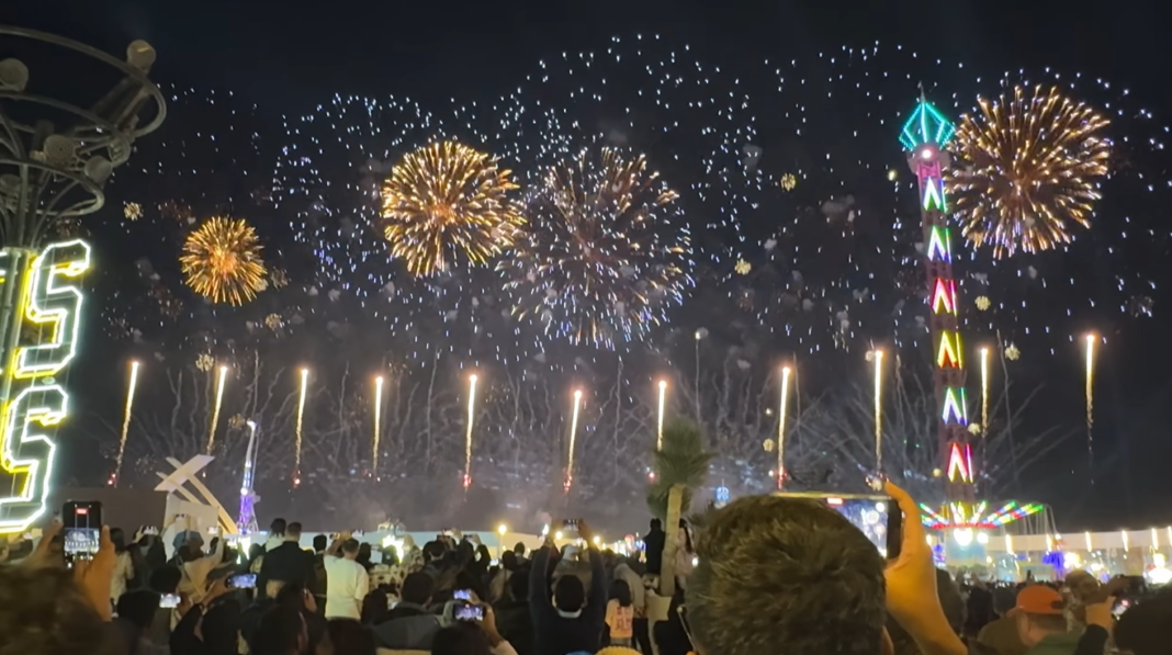 При цьому понад 120 000 гостей спостерігали шоу 6500 дронів, яке стало одним із найбільших синхронних запусків у світі. Літальні апарати створили дев'ять велетенських 3D-композицій, інтегрованих з цифровим зворотним відліком, спеціально написаною для дійства музикою та, власне, феєрверком.