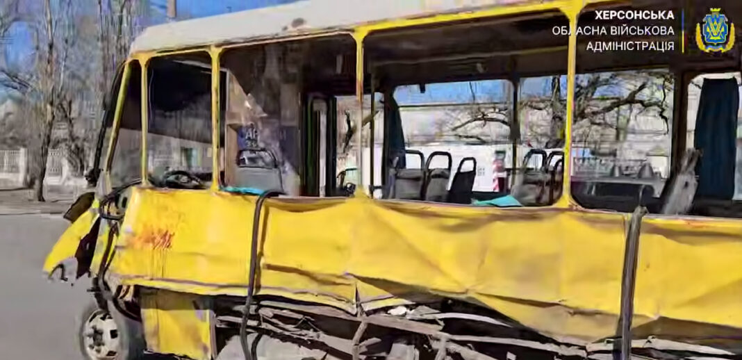 Російські військові 11 березня завдали удару по маршрутному таксі в Дніпровському районі Херсона. Внаслідок атаки відомо про 20 постраждалих.