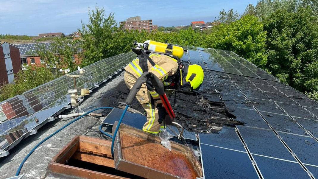 Пожежник ліквідує загоряння сонячних панелей на даху
