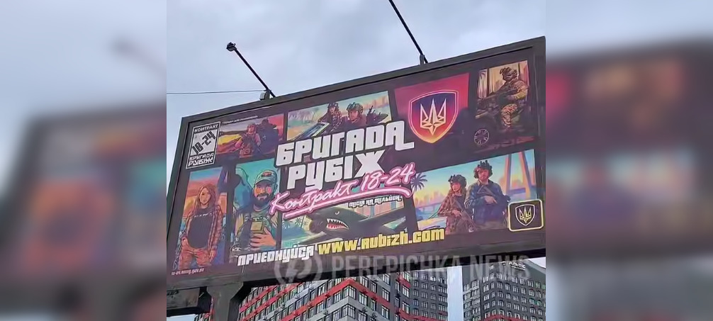 Нова реклама контракту "18-24" від бригади НГУ "Рубіж" на міських бігбордах, що обігрують мотиви місій у GTA, пропонує отримати "місію на мільйон" і приєднатися до лав бійців.