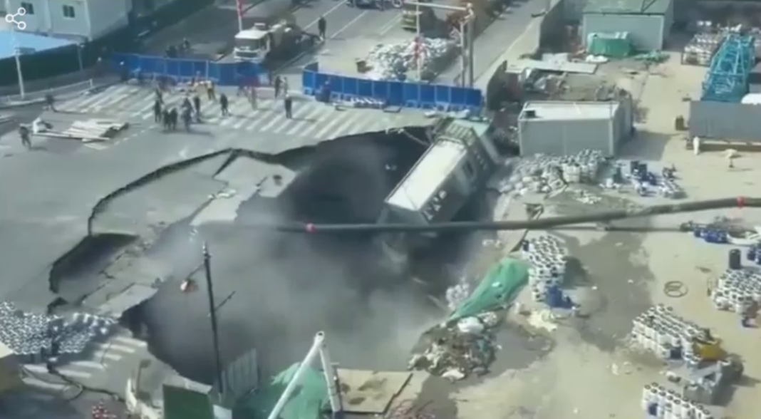 Користувачі соціальних мереж припускають, що причиною обвалу дороги в Шанхаї був витік на будівельному майданчику метро неподалік.